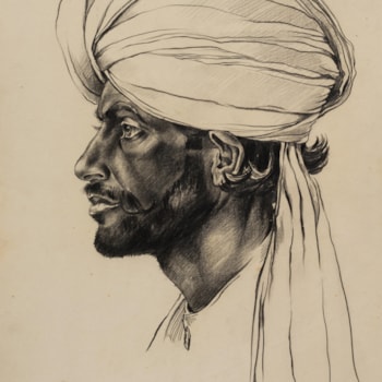 At TEFAF 2026 we will be exhibiting a group of nine portrait drawings from Northwest India. Drawn in 1923 by the British artist-traveller William Collett-Mason (1895–1957) and retained by the artist’s family until 2025, this group offers a window into the lives and costumes of working men in Punjab and Balochistan before the partition of 1947. Several of the drawings will be publicly exhibited for the first time, while others have not been seen since 1924, when six were shown in the Annual Exhibition of the Royal Society of Portrait Painters at Burlington House, and four were displayed in the Paris Salon at the Grand Palais.